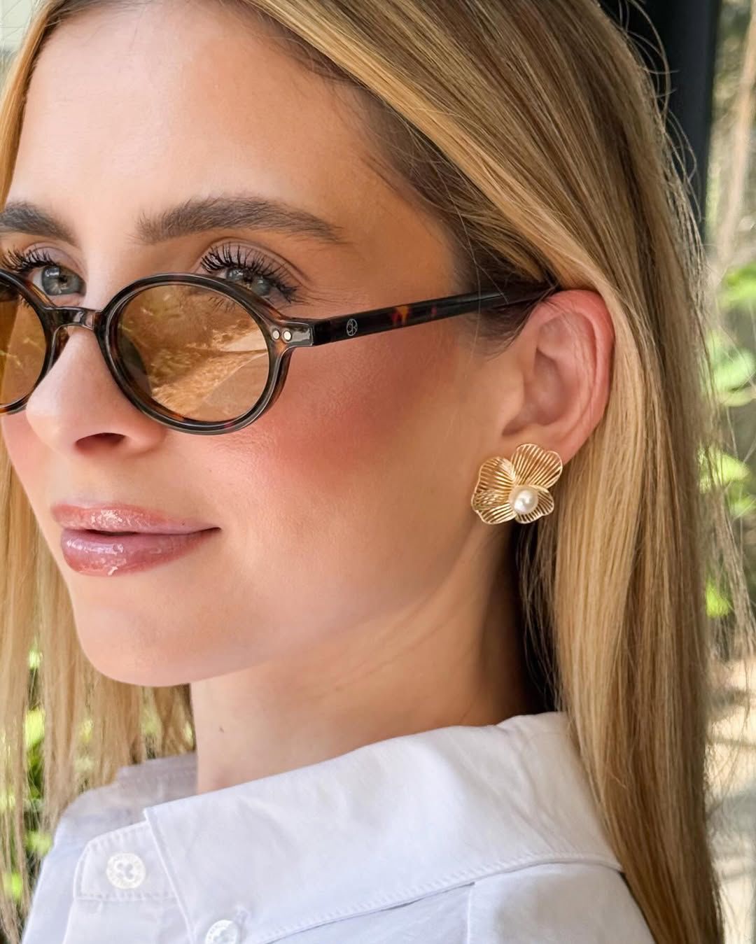Brinco Flor Camille Pérola Folheado a Ouro 18k