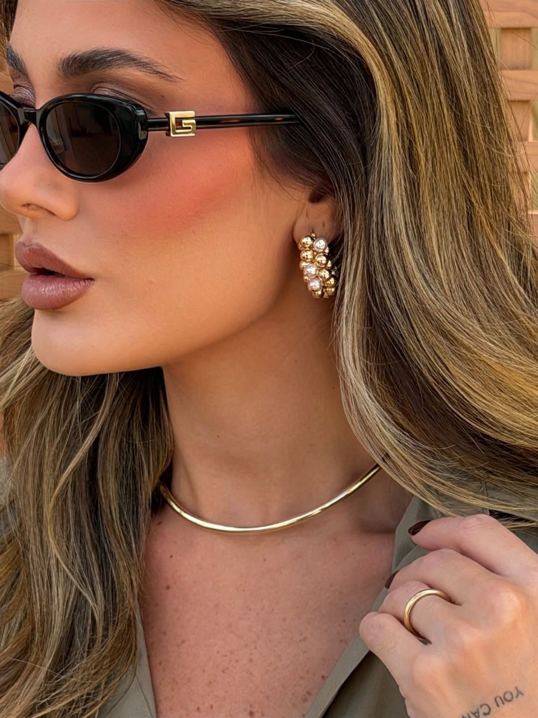 Brinco Argola Ari Esferas e Pérolas Folheado a Ouro 18k
