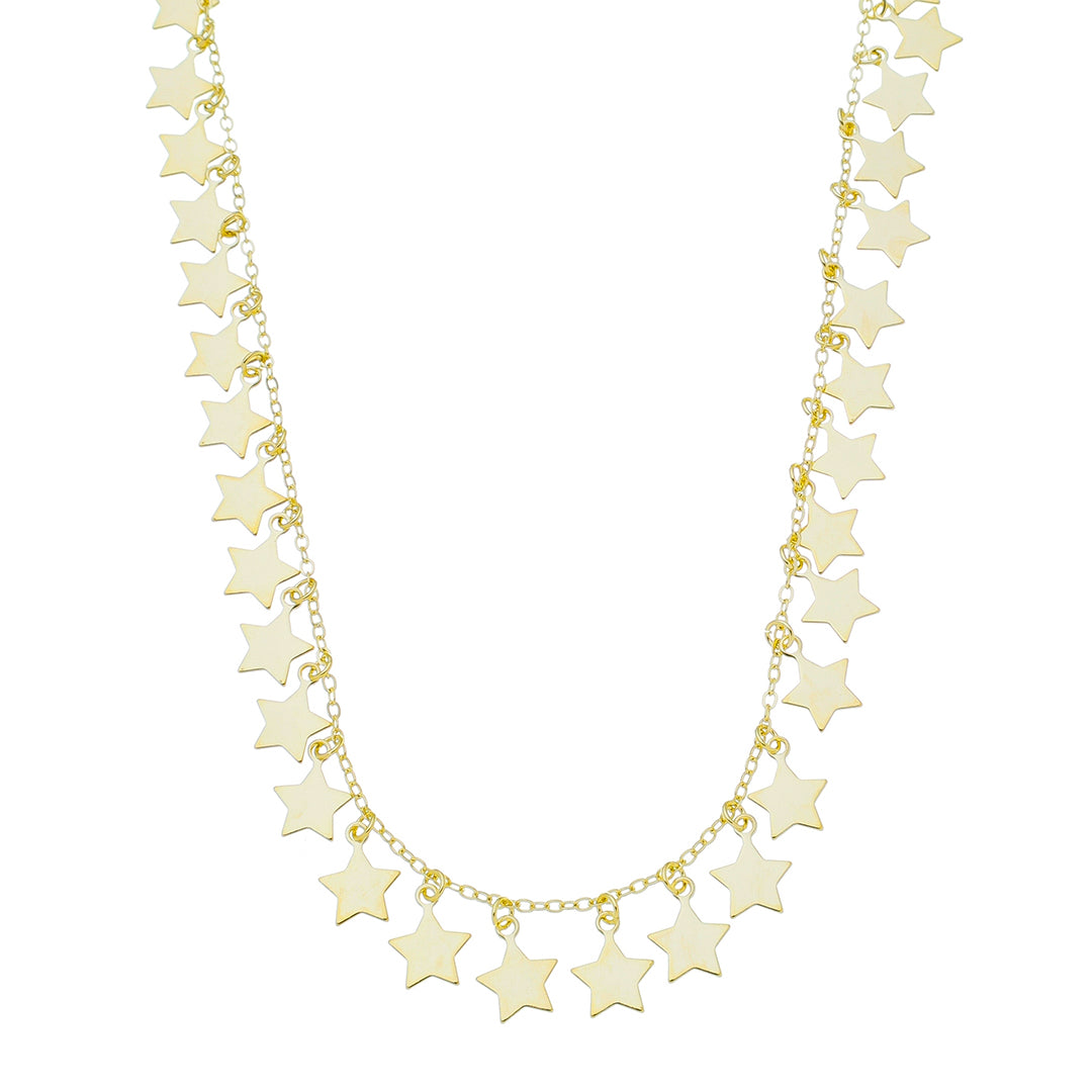 • Choker Fio de Nylon Letra Inicial Paolla Mini Estrelas Folheado a Ouro 18k