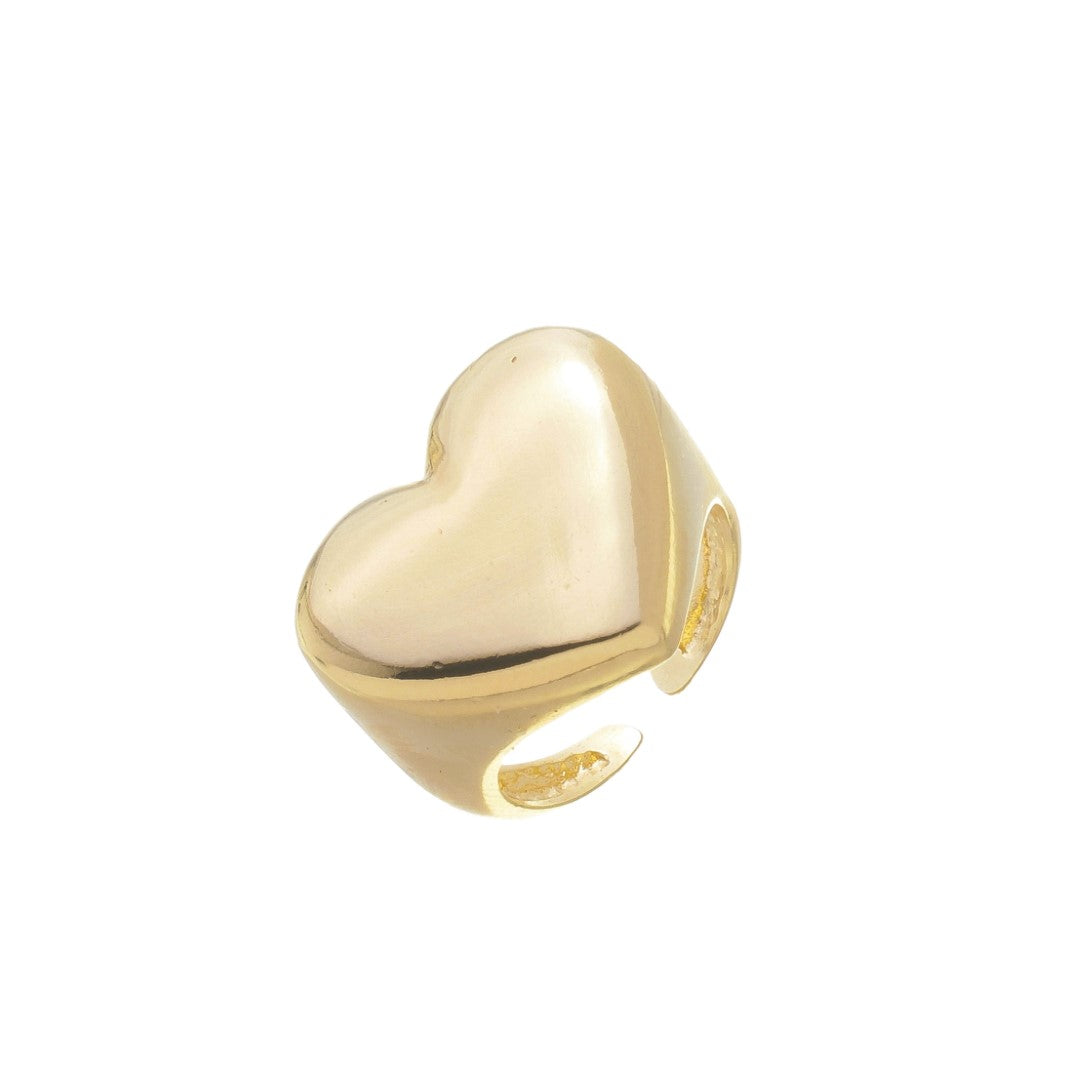 Descubra o encanto do anel Fernanda, com um coração de metal liso no topo e banhado a ouro 18k, completo com uma regulagem inteligente.