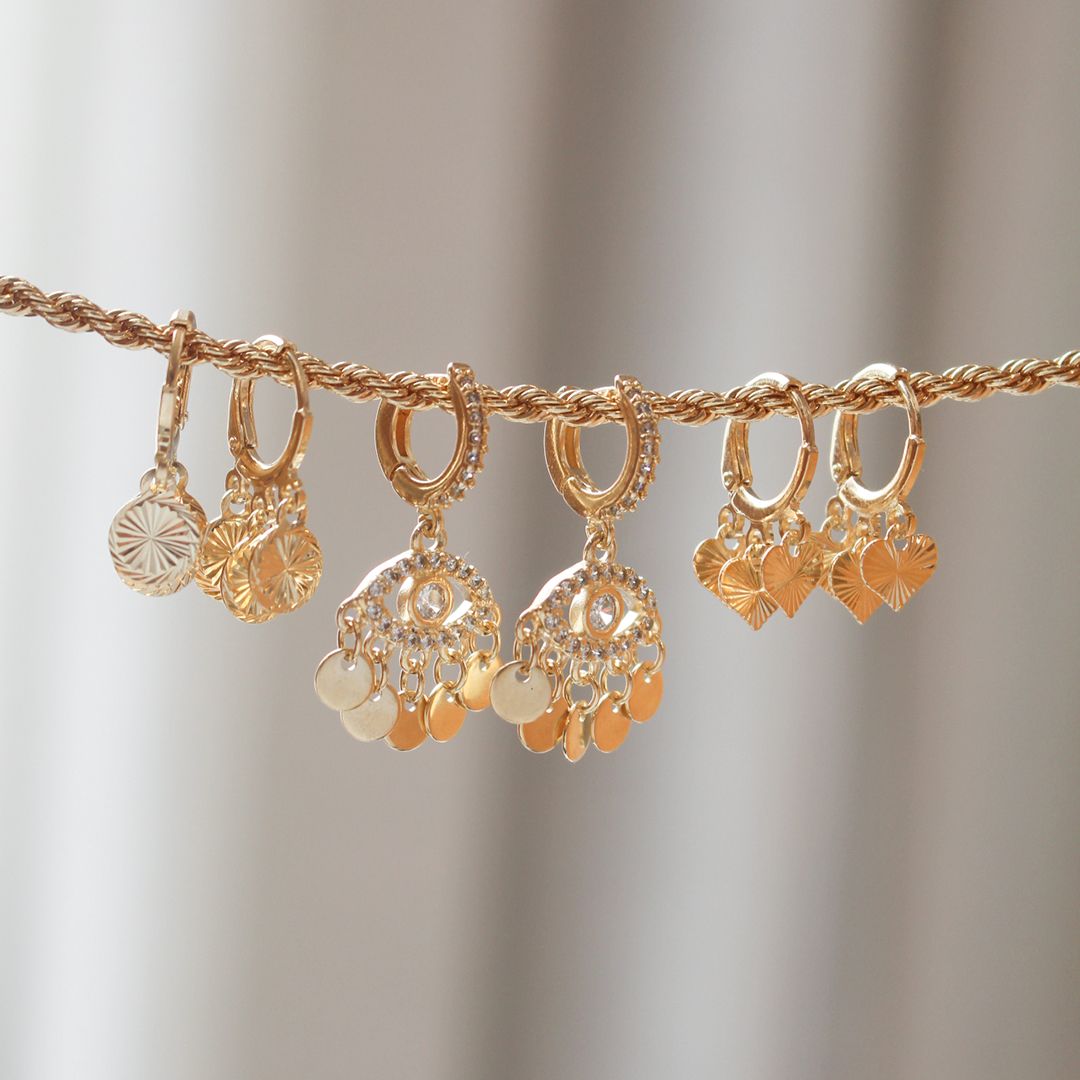 O brinco Cleo possui um designer moderno e sofisticado movimento das mini medalhas faz com que seu rosto fique super iluminado, use sozinho ou acompanhado de brincos e piercings e tem um mix perfeito.