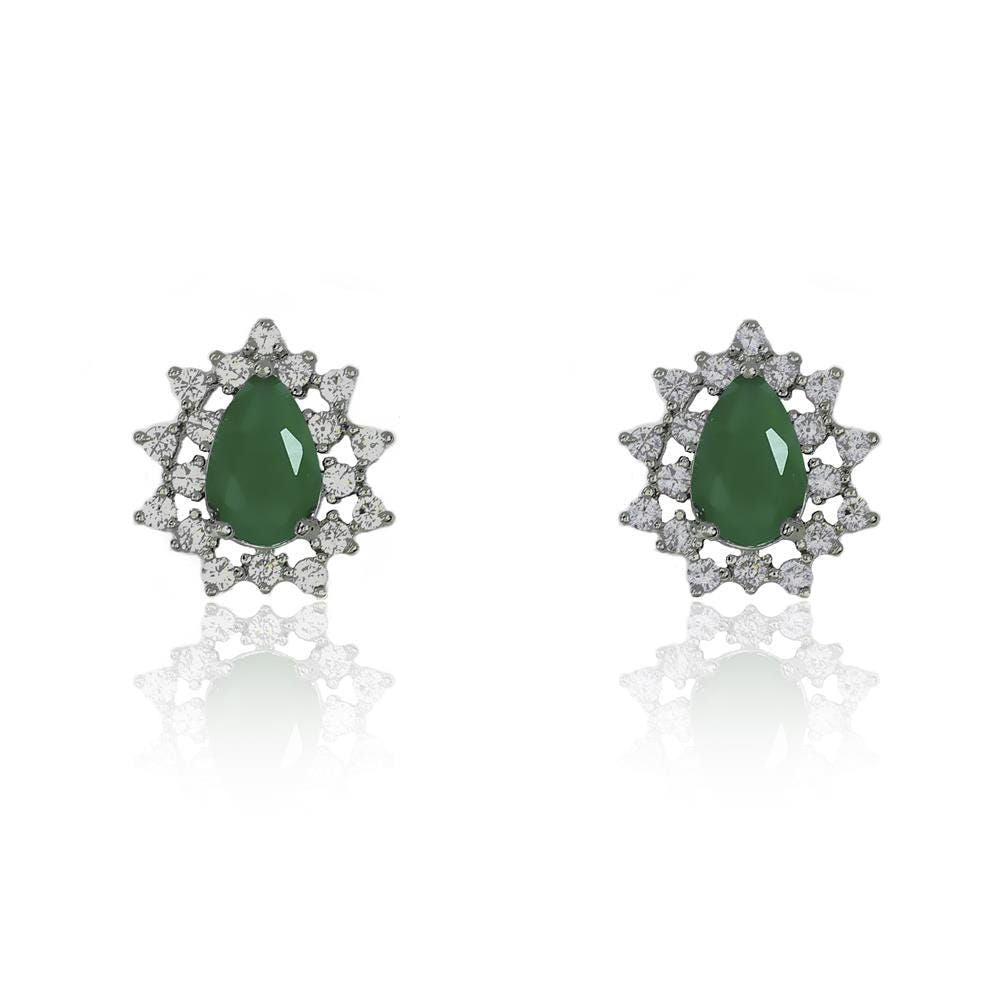 O brinco Gota esmeralda média zircônia cravejada é folheado em ródio negro, possui formato de gota com zircônia central na cor esmeralda e pequenas zircônias na cor cristal cravejadas em volta da gotaEsse brinco é pura delicadeza e sofisticação, perfeito para qualquer ocasião.
