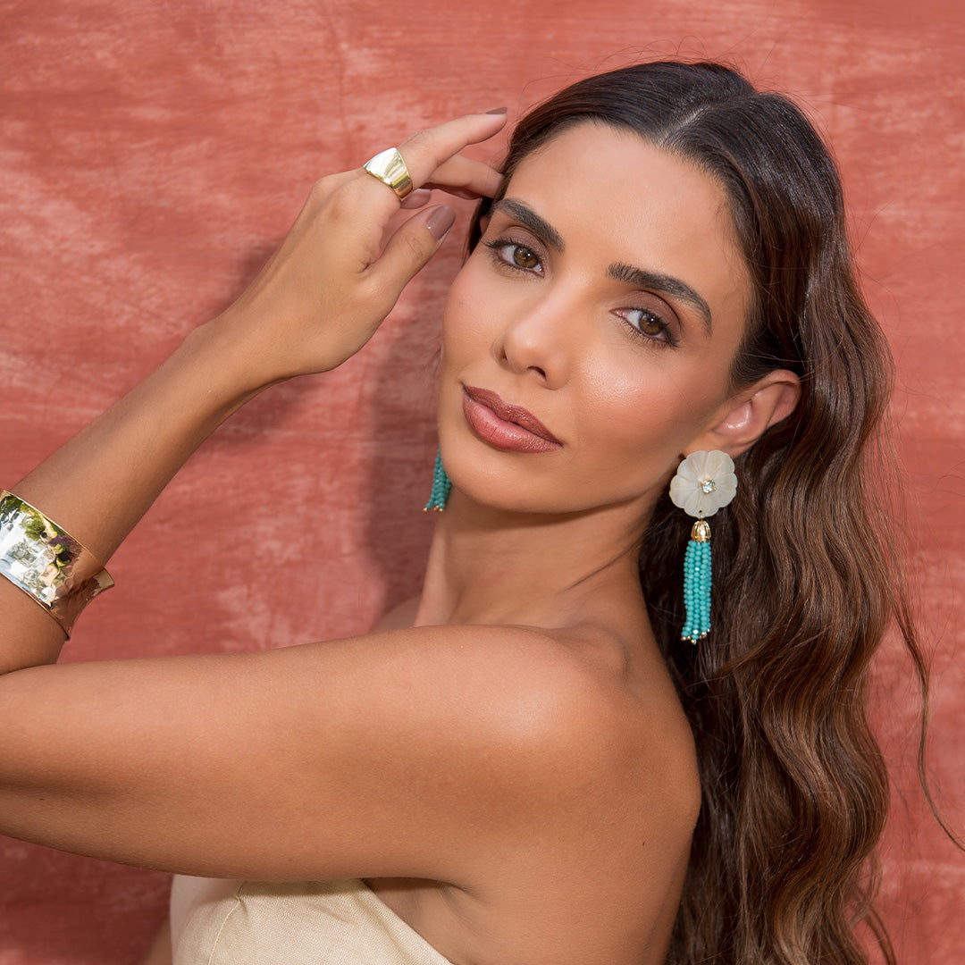 Conheça o brinco Jaque, uma peça delicada e sofisticada que une o charme da madrepérola com o brilho encantador dos cristais opaline e zircônias. Este brinco é folheado a ouro 18K, garantindo durabilidade e um acabamento impecável. A flor de madrepérola traz um toque de natureza e suavidade, enquanto a pedra de zircônia e os cristais turquesa realçam o brilho e a elegância. Ideal para quem deseja compor um visual romântico e refinado, seja para ocasiões especiais ou para transformar o dia a dia com um toque de luxo e feminilidade.