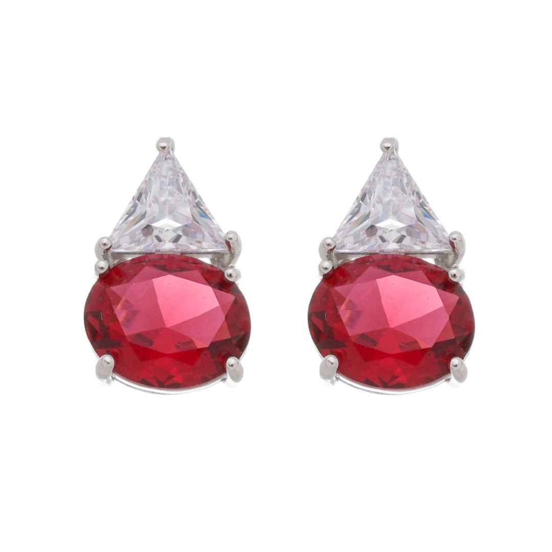Brinco piuka geométrico oval zircônia rubi folheado em ródio branco