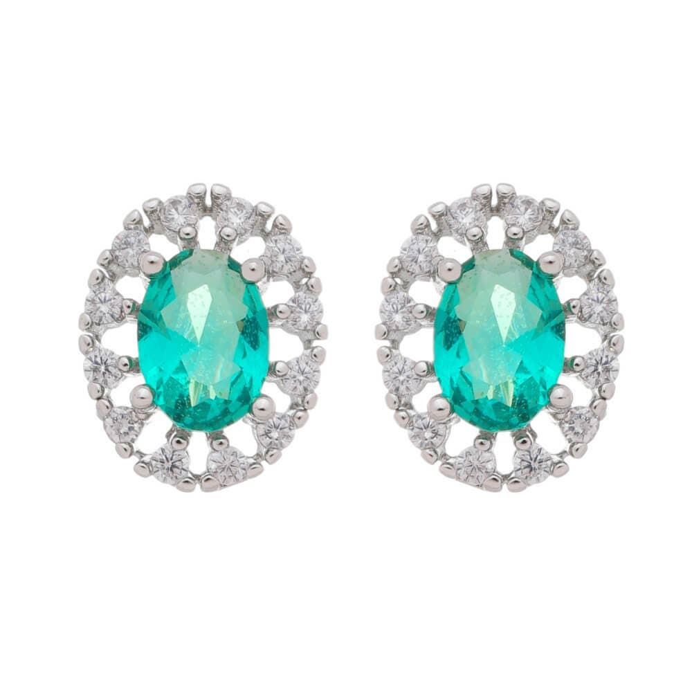 Brinco piuka oval vazado acquamarine cravejado zircônia folheado em ródio branco
