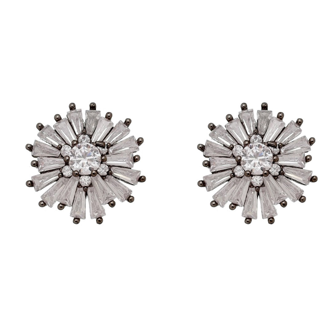 Brinco Piuka Emie Redondo Zircônias Navetes Folheado Em Ródio Negro