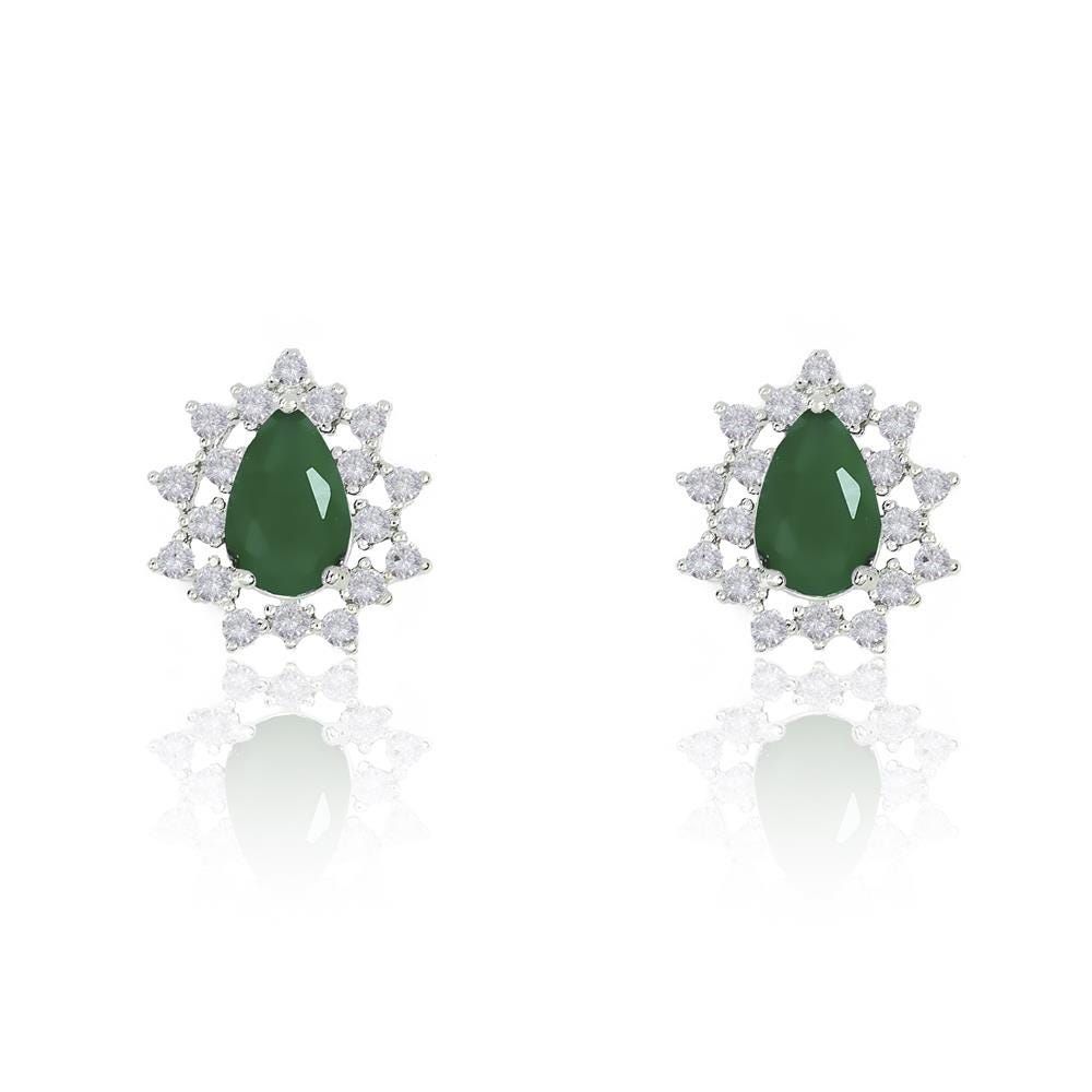 O brinco Gota esmeralda média zircônia cravejada é folheado em ródio branco, possui formato de gota com zircônia central na cor esmeralda e pequenas zircônias na cor cristal cravejadas em volta da gotaEsse brinco é pura delicadeza e sofisticação, perfeito para qualquer ocasião.