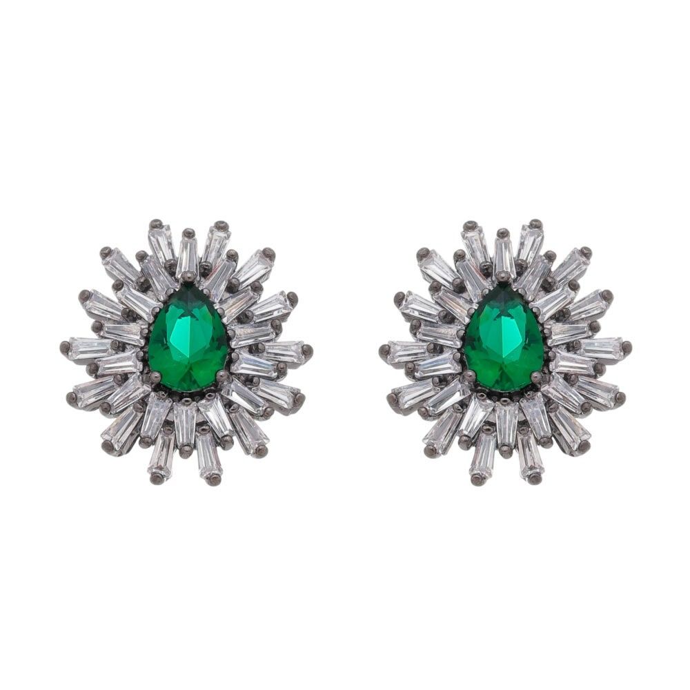 "Brinco gota folheado em ródio negro com zircônia central na cor esmeralda e navetes na cor cristal. Pode ser usado durante o dia ou a noite e fica perfeito em ocasiões especiais. Use com pontos de luz nos outros furos e um colar com pingente de gota esmeralda para finalizar o look. Confira em nossa página todas as opções em brincos de zircônia e escolha o seu favorito!