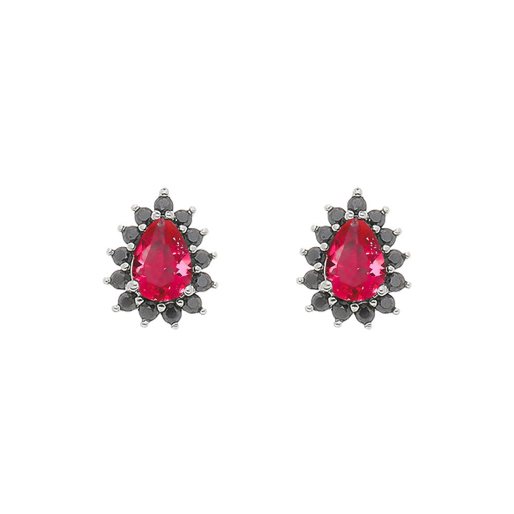 Com uma gota de zircônia na cor rubi, zircônias ônix cravejadas ao redor e folheado em ródio branco essa peça é irresistível.