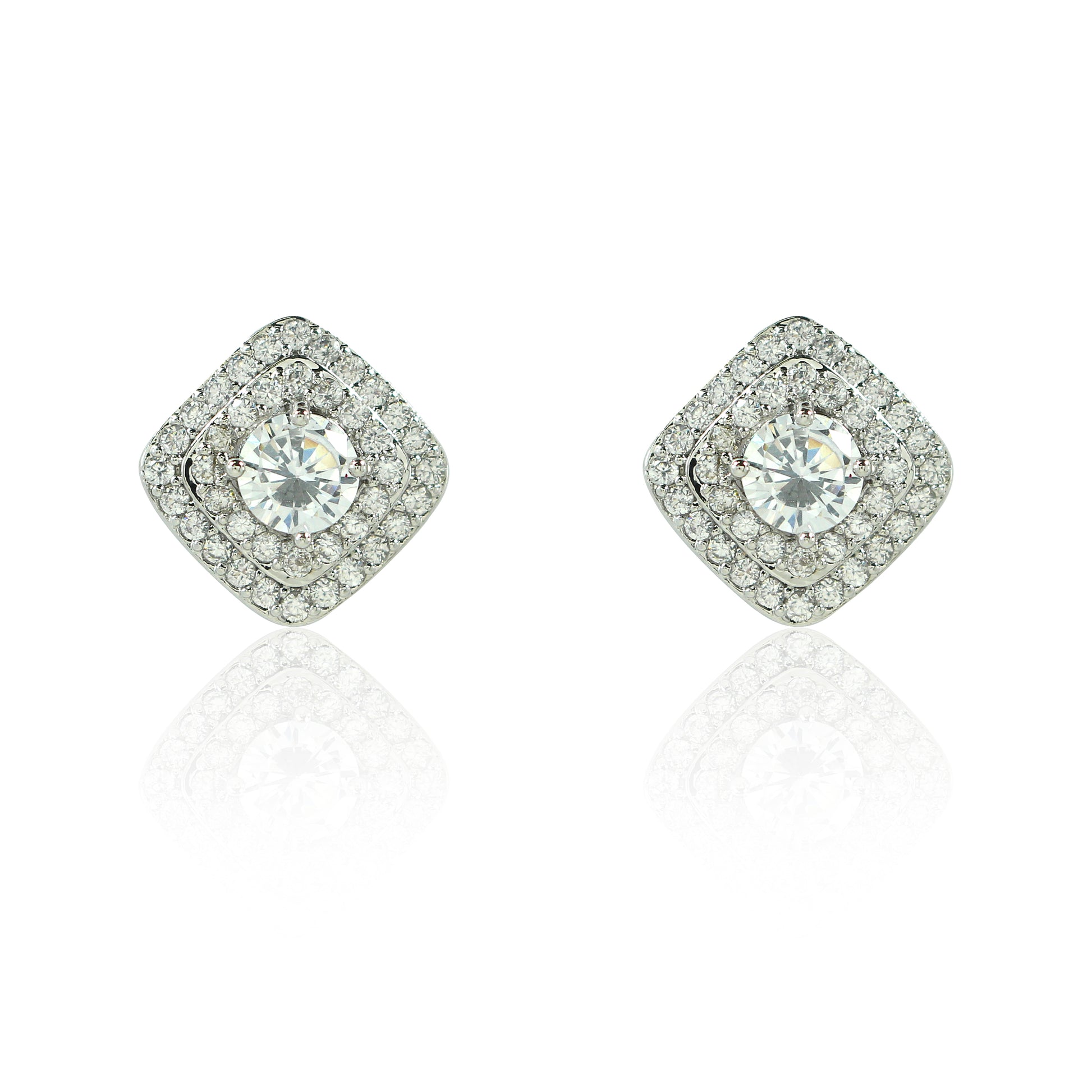 Brinco Piuka Kyle Quadrado Médio Zircônias Folheado Em Ródio Branco