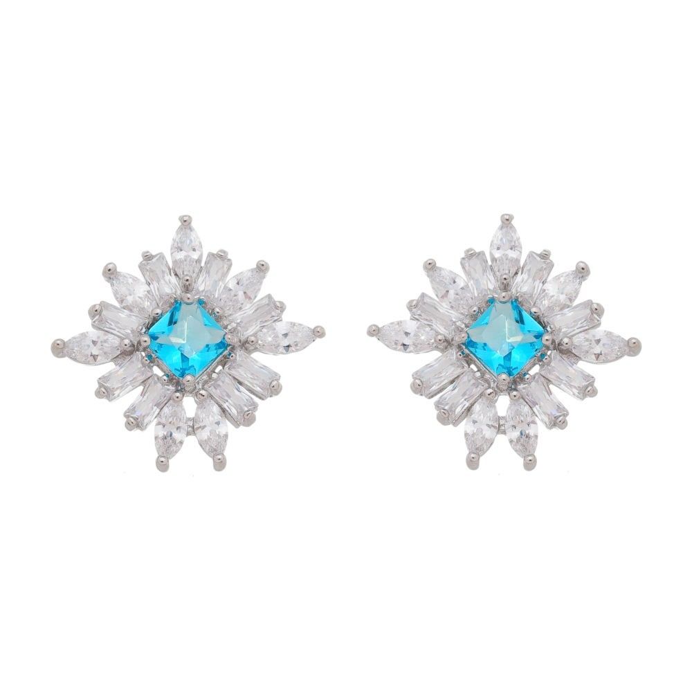 Brinco piuka losango zircônia blue e navetes folheado em ródio branco