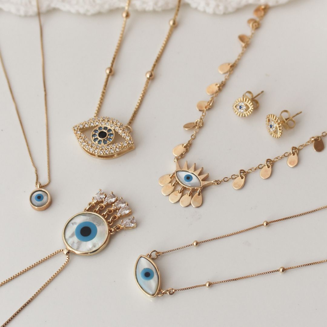 Um acessório charmoso e muito delicado, faz toda a diferença e traz muita elegância na hora de montar o seu look. Olho grego são amuletos e tem um significado muito especial para quem acredita, afasta mal olhado e a negatividade.