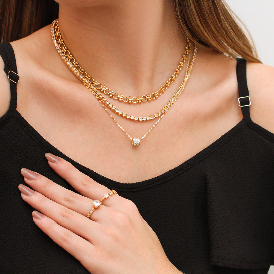 Transforme a maneira como você usa seus pingentes! Adicione agora mesmo o Separador de Pingentes Zircônias Folheado a Ouro 18k da Piuka ao seu carrinho e crie combinações incríveis com seus acessórios favoritos!