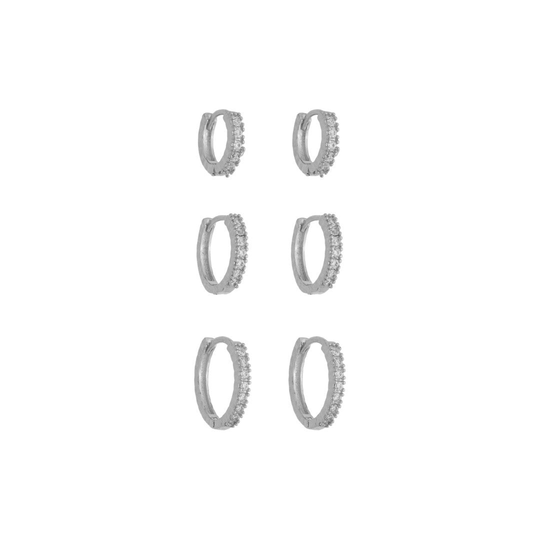 Composto por três tamanhos diferentes de argolinhas, o trio pode ser usado em conjunto, em diferentes furos, ou separadamente, criando combinações personalizadas. Cada peça é finamente cravejada com zircônias brancas, que oferecem um brilho sutil e elegante, valorizando qualquer produção — do look casual ao mais refinado.